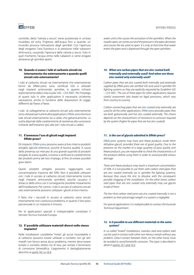 used for all the other applications. Effebi-press provides pipes that