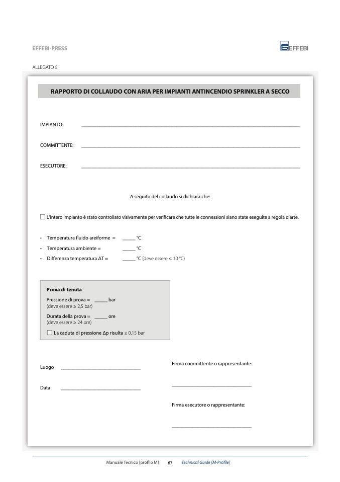 Pressione di prova = _____ bar
