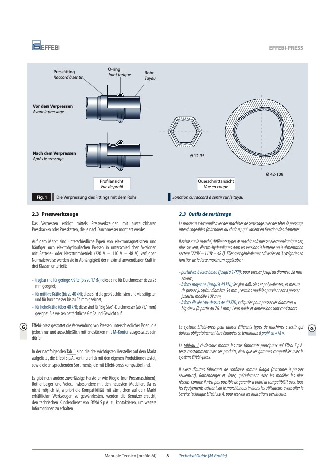sowie die entsprechenden Sortiments, die mit Effebi-press kompatibel sind.