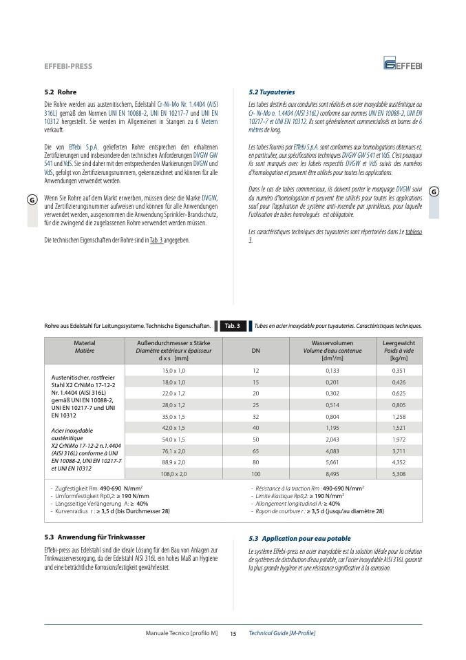 Die von Effebi S.p.A. gelieferten Rohre entsprechen den erhaltenen
