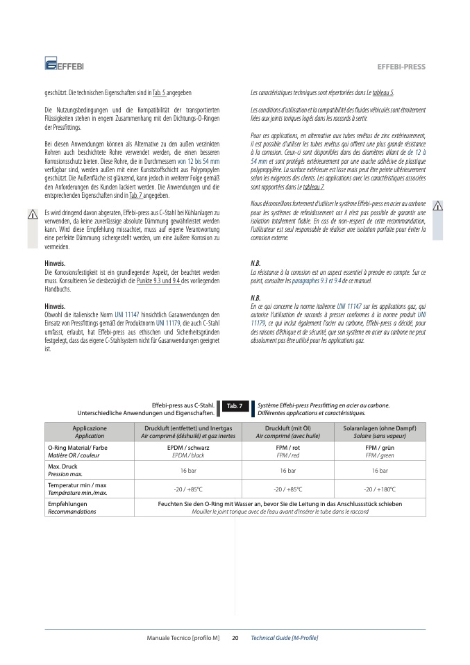 Es wird dringend davon abgeraten, Effebi-press aus C-Stahl bei Kühlanlagen zu