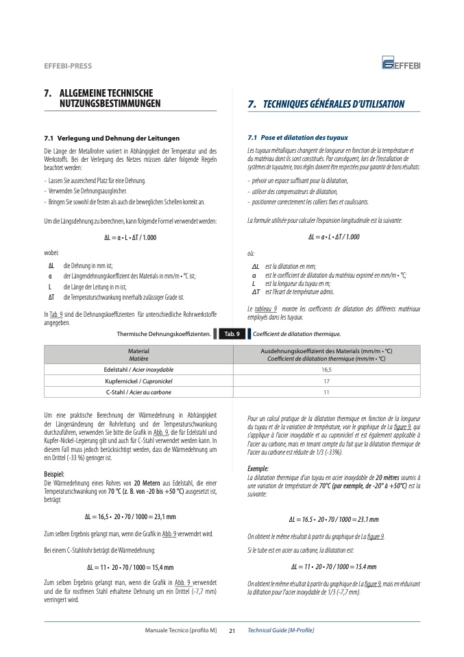 In Tab. 9 sind die Dehnungskoeffizienten für unterschiedliche Rohrwerkstoffe