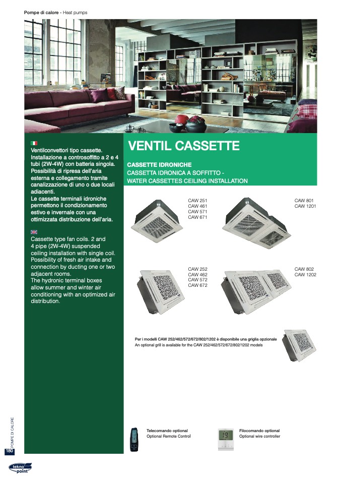 Ventilconvettori tipo cassette.