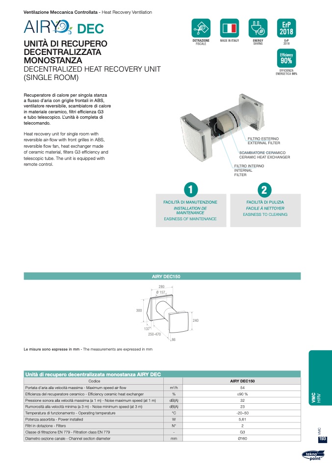 Unità di recupero decentralizzata monostanza AIRY DEC