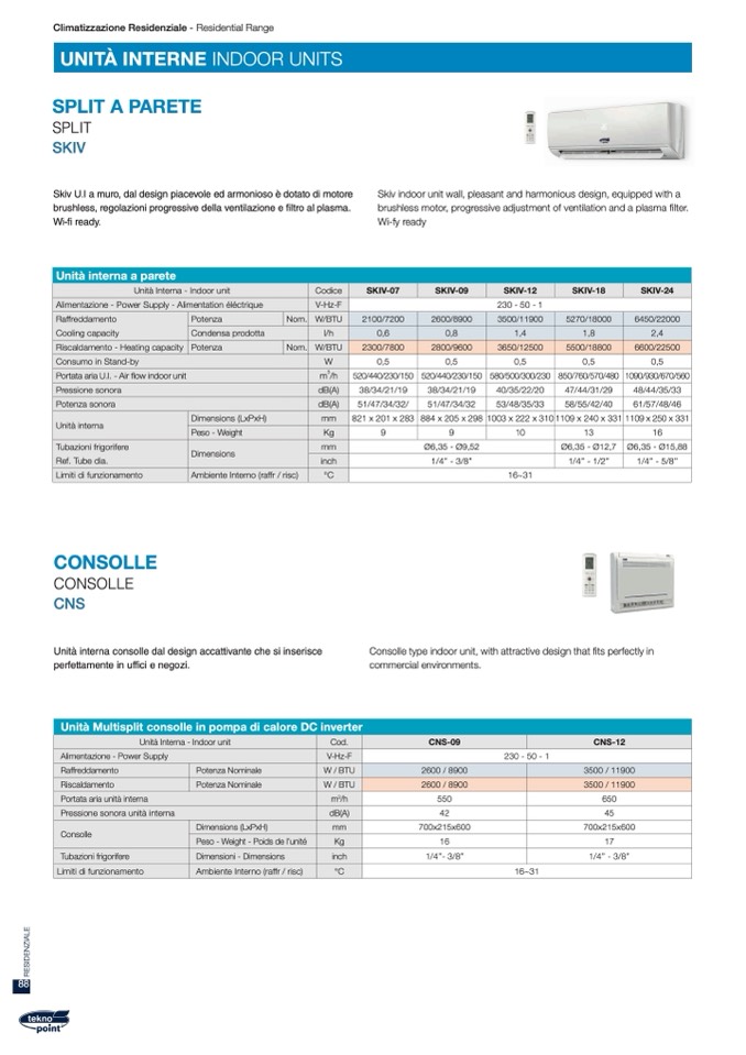 Skiv indoor unit wall, pleasant and harmonious design, equipped with a