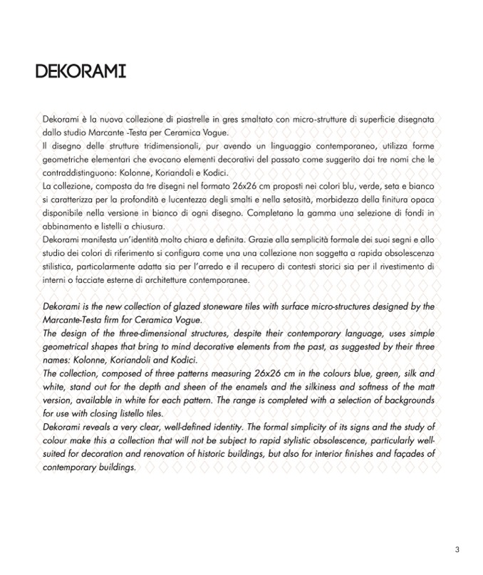 Dekorami is the new collection of glazed stoneware tiles with surface micro-structures designed by the