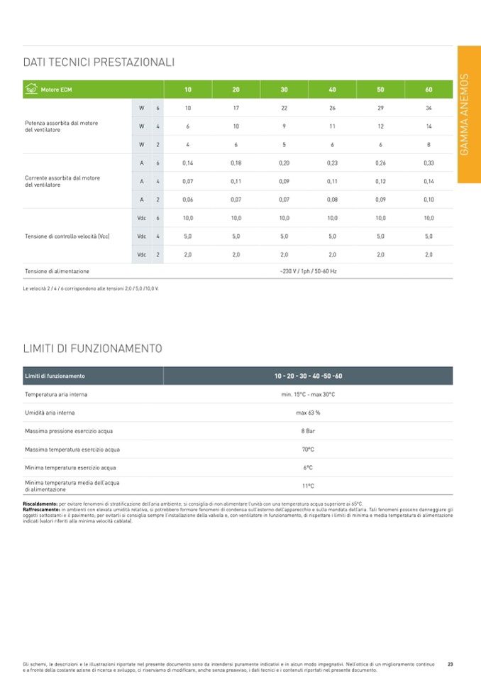 Riscaldamento: per evitare fenomeni di stratificazione dell’aria ambiente, si consiglia di non alimentare l’unità con una temperatura acqua superiore ai 65°C.