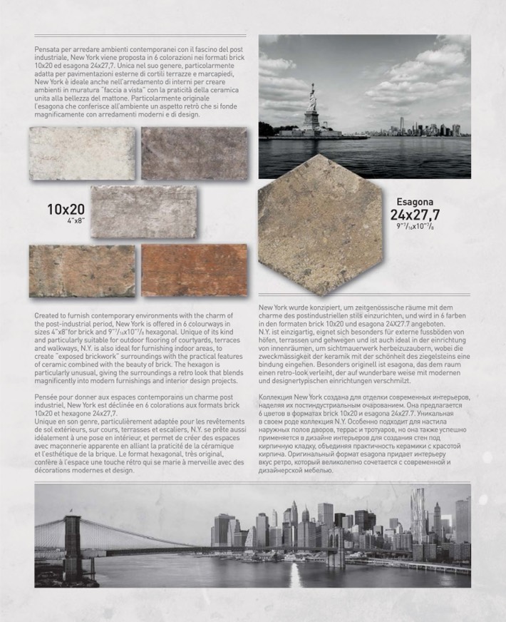 industriale, New York viene proposta in 6 colorazioni nei formati brick