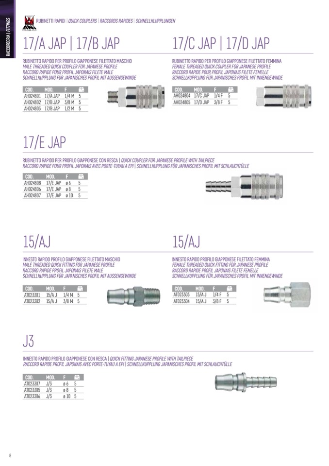 FEMALE THREADED QUICK COUPLER FOR JAPANESE PROFILE