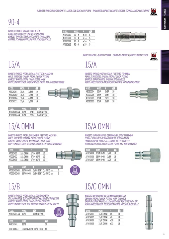 INNESTI RAPIDI | QUICK FITTINGS | EMBOUTS RAPIDES | KUPPLUNGSSTECKER