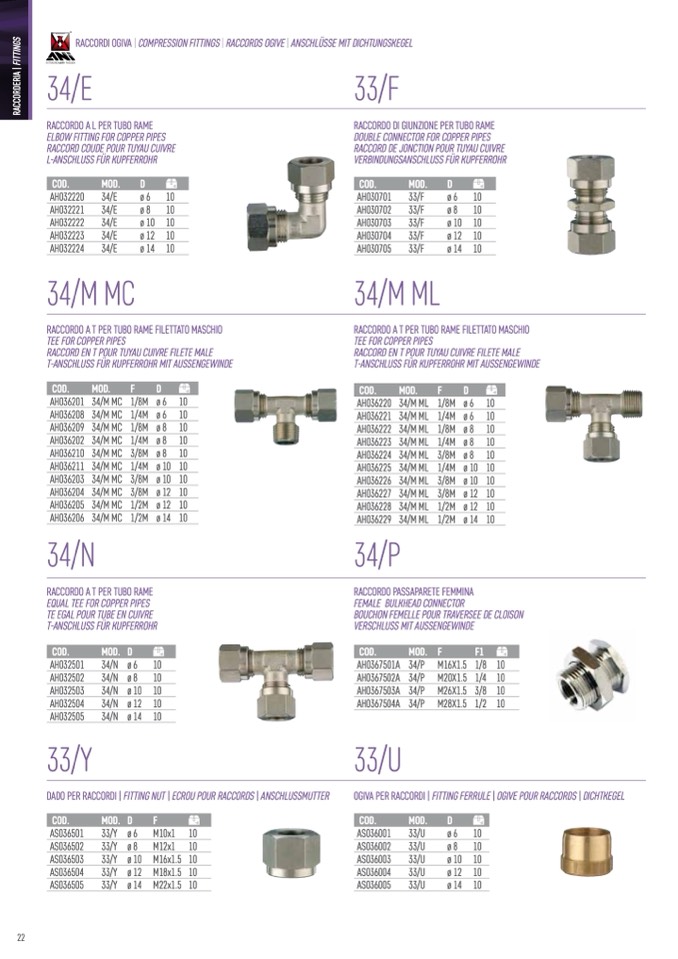 RACCORDI OGIVA | COMPRESSION FITTINGS | RACCORDS OGIVE | ANSCHLÜSSE MIT DICHTUNGSKEGEL