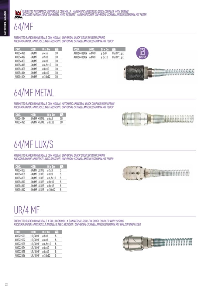RUBINETTO RAPIDO UNIVERSALE CON MOLLA | UNIVERSAL QUICK COUPLER WITH SPRING