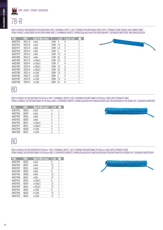 TUBI | HOSES | TUYAUX | SCHLÄUCHE