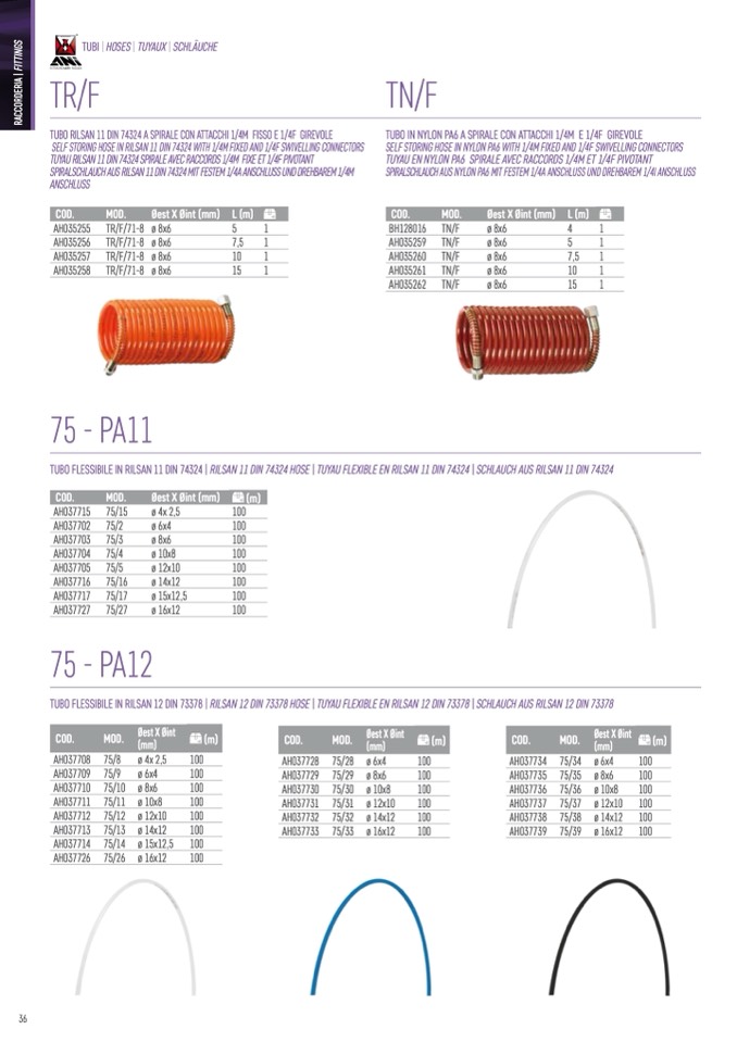 TUBO FLESSIBILE IN RILSAN 11 DIN 74324 | RILSAN 11 DIN 74324 HOSE | TUYAU FLEXIBLE EN RILSAN 11 DIN 74324 | SCHLAUCH AUS RILSAN 11 DIN 74324