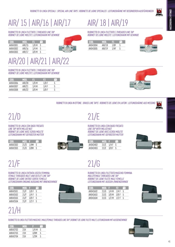 RUBINETTI DI LINEA SPECIALI | SPECIAL AIR-LINE TAPS | ROBINETS DE LIGNE SPECIALES | LEITUNGSHÄHNE MIT BESONDEREN AUSFÜHRUNGEN