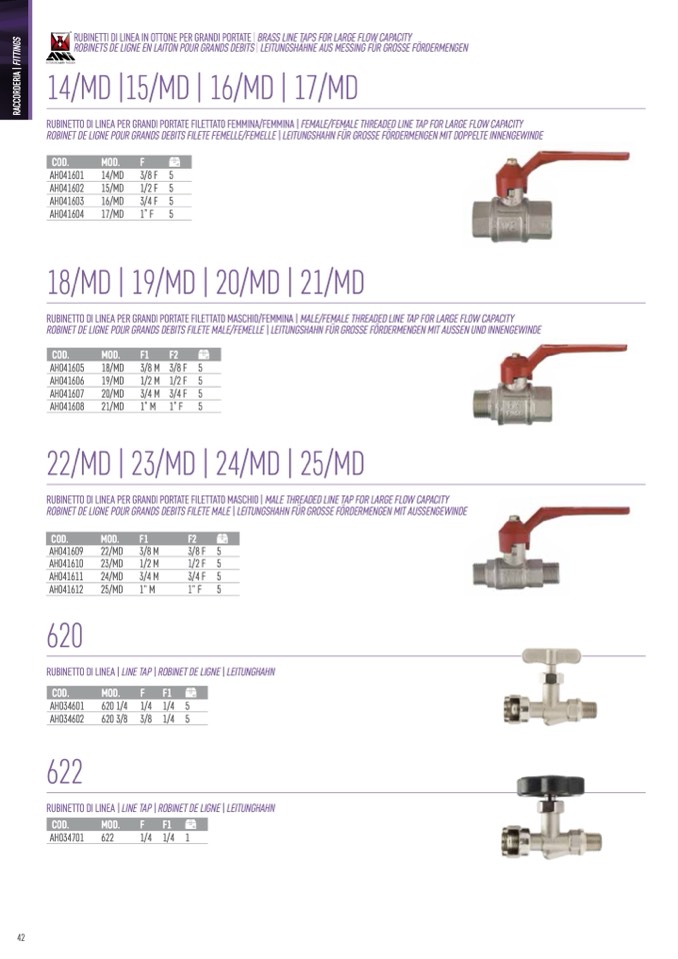 ROBINET DE LIGNE POUR GRANDS DEBITS FILETE MALE/FEMELLE | LEITUNGSHAHN FÜR GROSSE FÖRDERMENGEN MIT AUSSEN UND INNENGEWINDE