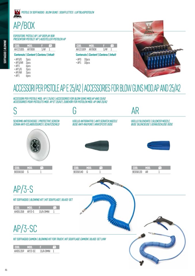 ACCESSORI PER PISTOLE AP E 25/A2 | ACCESSORIES FOR BLOW GUNS MOD.AP AND 25/A2