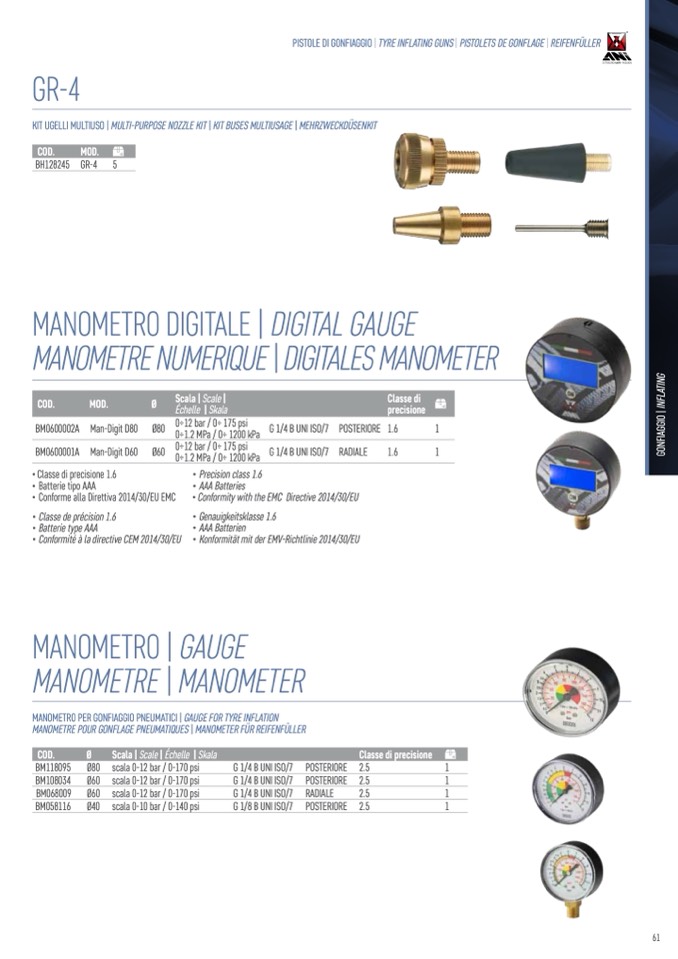 MANOMETRO PER GONFIAGGIO PNEUMATICI | GAUGE FOR TYRE INFLATION