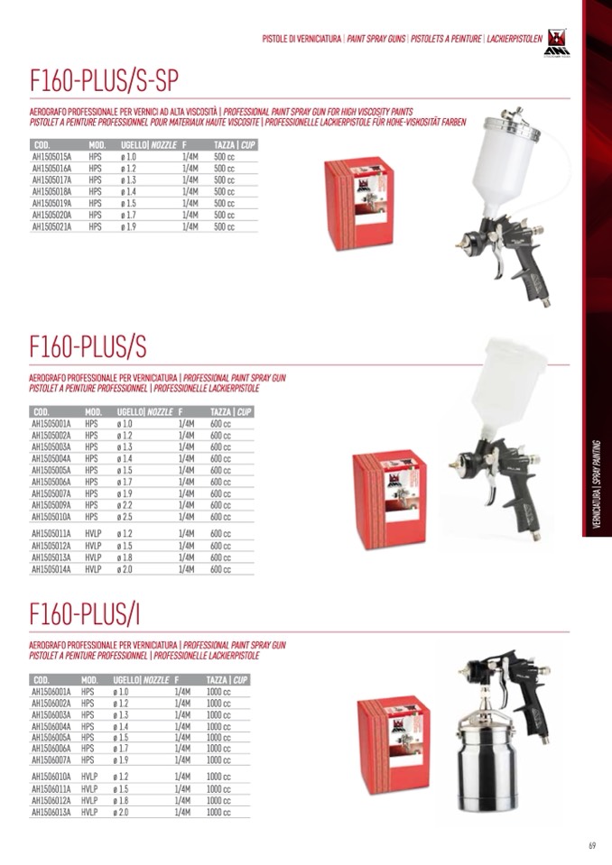 PISTOLE DI VERNICIATURA | PAINT SPRAY GUNS | PISTOLETS A PEINTURE | LACKIERPISTOLEN