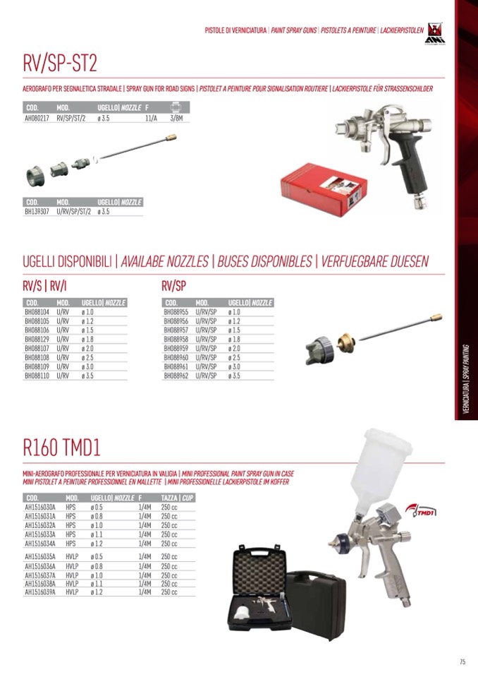 PISTOLE DI VERNICIATURA | PAINT SPRAY GUNS | PISTOLETS A PEINTURE | LACKIERPISTOLEN
