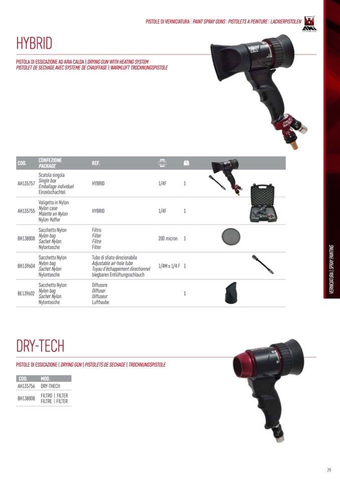 PISTOLE DI VERNICIATURA | PAINT SPRAY GUNS | PISTOLETS A PEINTURE | LACKIERPISTOLEN