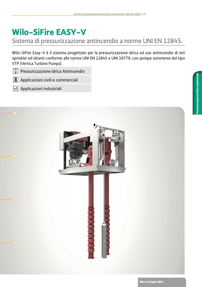 sprinkler ed idranti conforme alle norme UNI EN 12845 e UNI 10779, con pompe sommerse del tipo