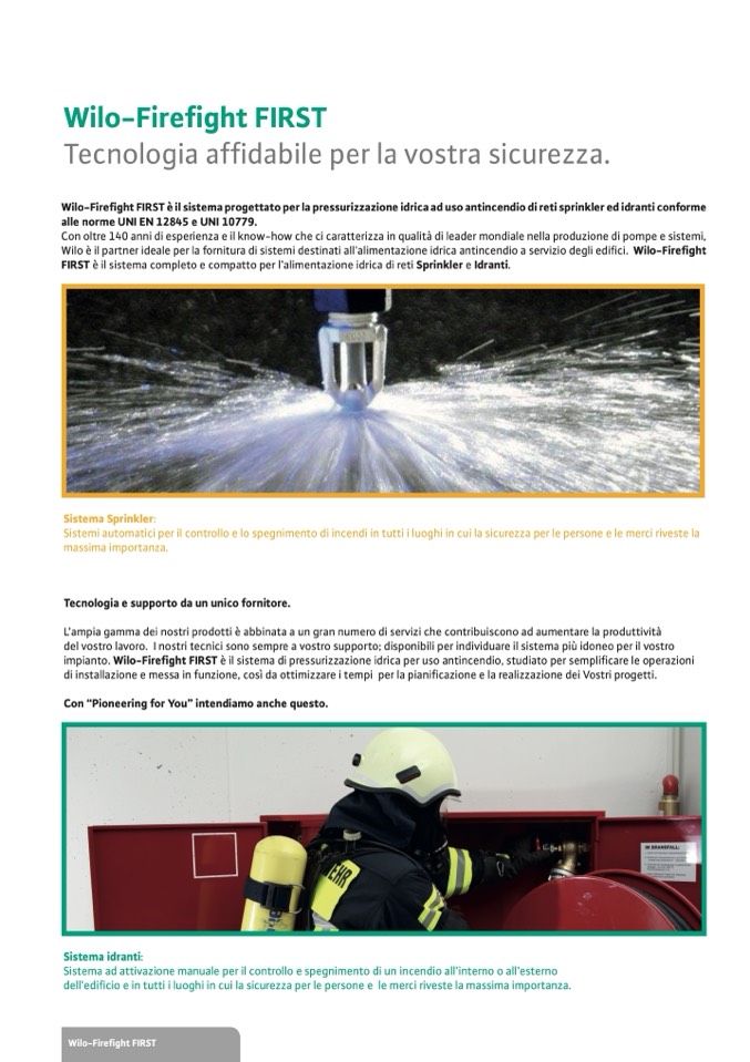 impianto. Wilo-Firefight FIRST è il sistema di pressurizzazione idrica per uso antincendio, studiato per semplificare le operazioni