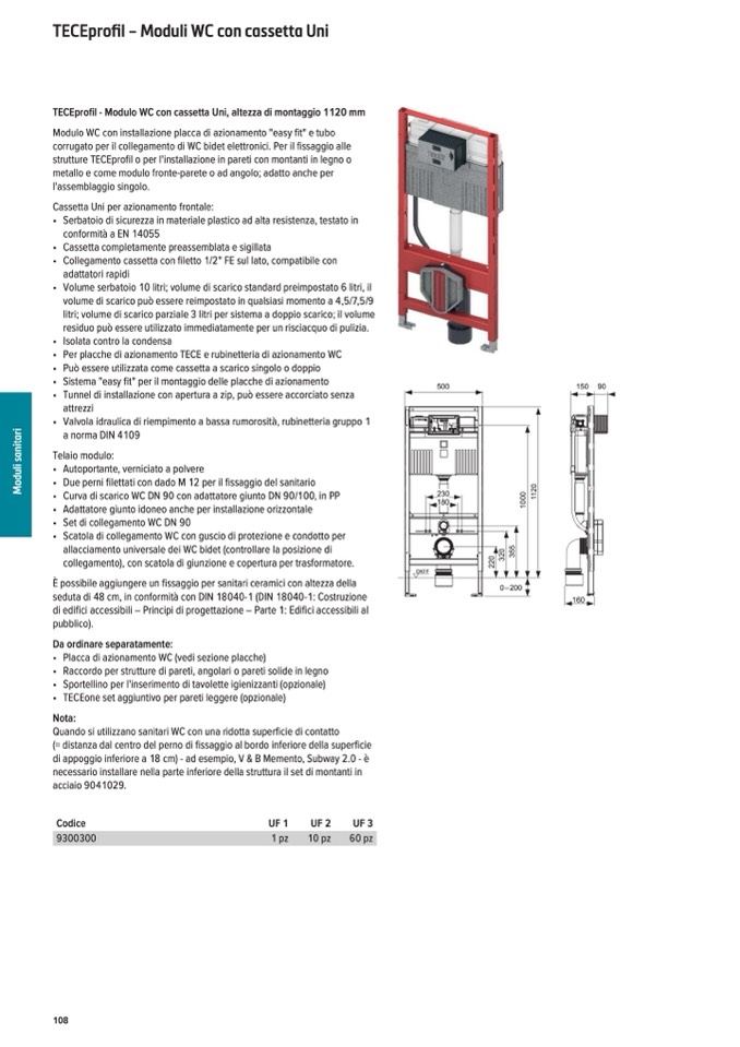 TECEprofil - Modulo WC con cassetta Uni, altezza di montaggio 1120 mm