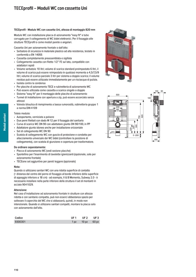 TECEprofil - Modulo WC con cassetta Uni, altezza di montaggio 820 mm