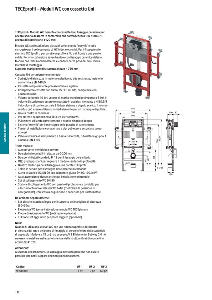 TECEprofil - Modulo WC Geronto con cassetta Uni, fissaggio ceramica per