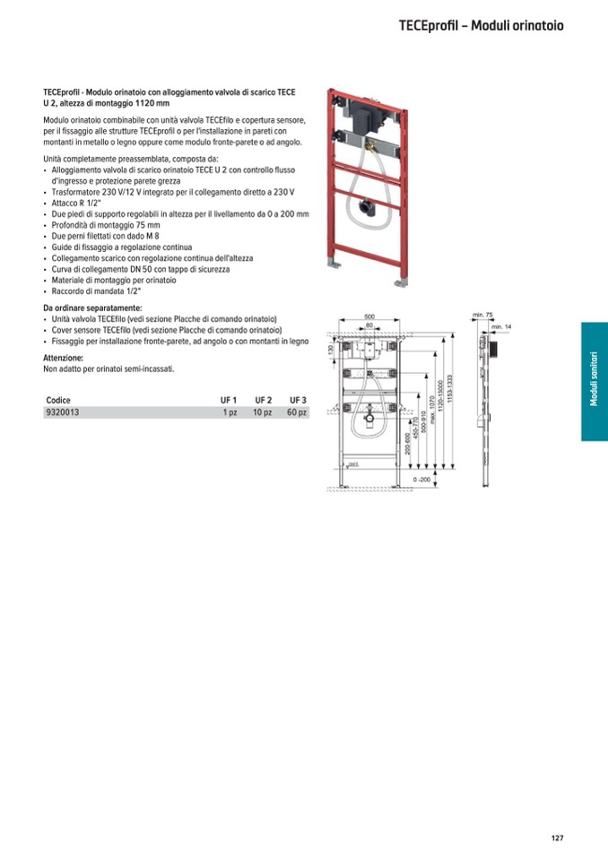 • Unità valvola TECEfilo (vedi sezione Placche di comando orinatoio)