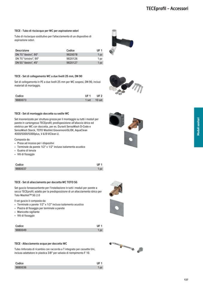 TECE - Set di allacciamento per doccetta WC TOTO SG