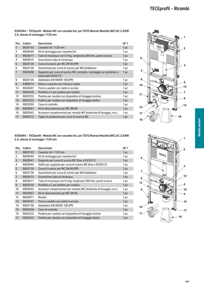 9300344 – TECEprofil - Modulo WC con cassetta Uni, per TOTO Neorest Washlet (WC) AC 2.0/EW