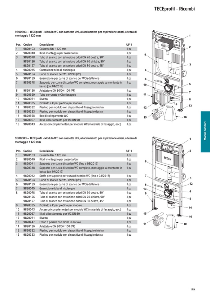 9300303 – TECEprofil - Modulo WC con cassetta Uni, allacciamento per aspirazione odori, altezza di