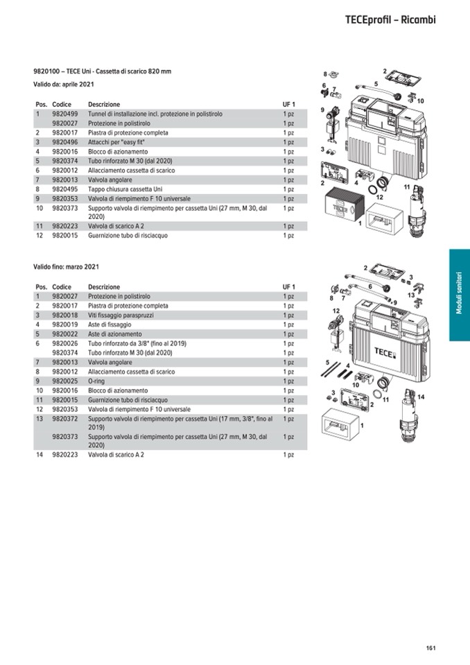 9820100 – TECE Uni - Cassetta di scarico 820 mm