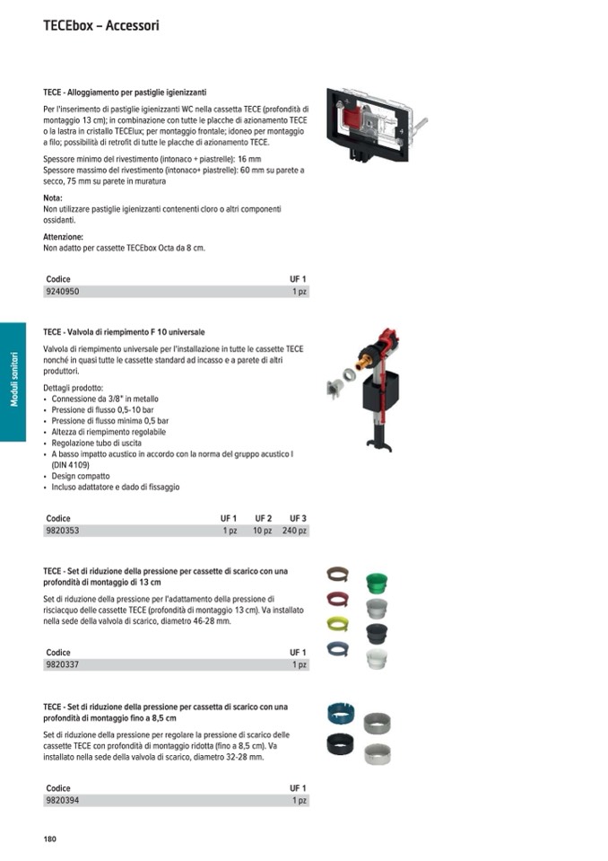risciacquo delle cassette TECE (profondità di montaggio 13 cm). Va installato