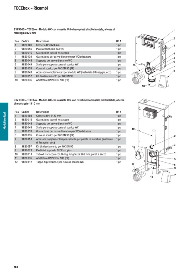 9371300 – TECEbox - Modulo WC con cassetta Uni, con rivestimento frontale piastrellabile, altezza