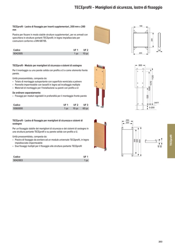 • Piastra di fissaggio da avvitare ad un modulo universale TECEprofil, in legno