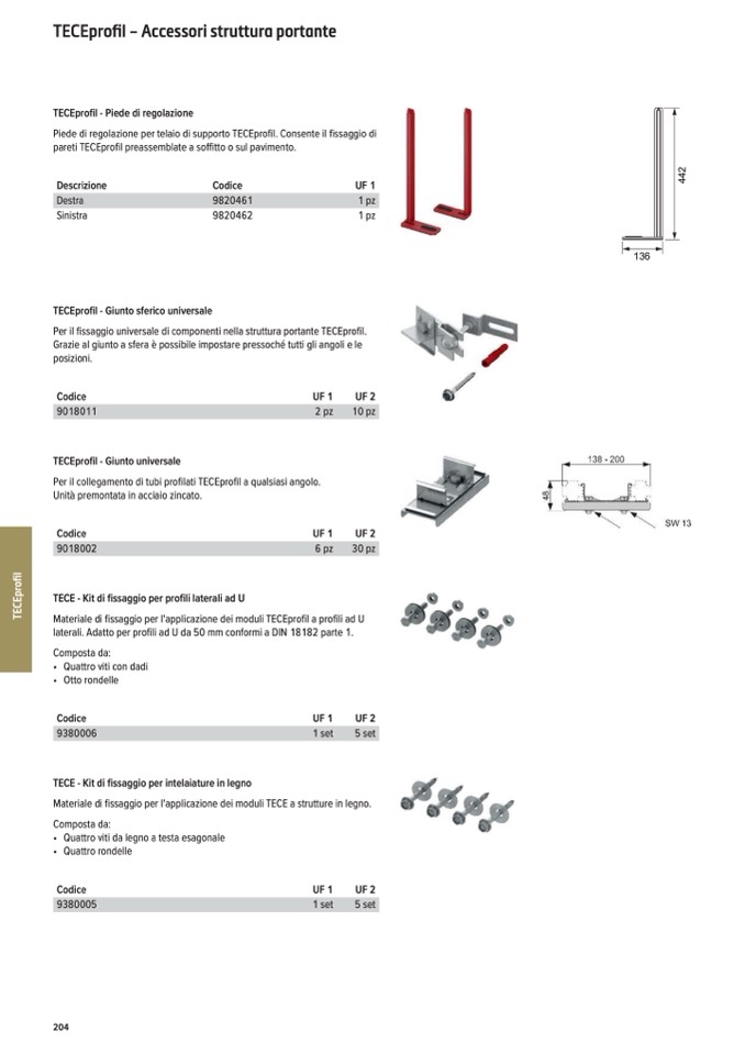 Per il fissaggio universale di componenti nella struttura portante TECEprofil.