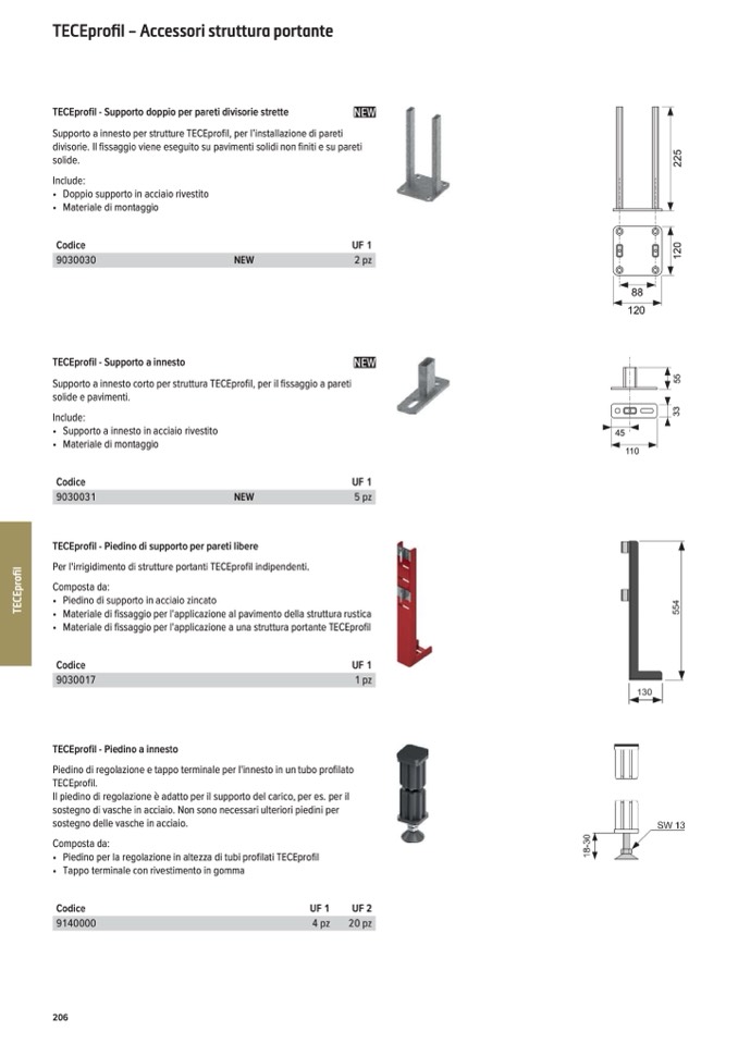 Supporto a innesto per strutture TECEprofil, per l’installazione di pareti