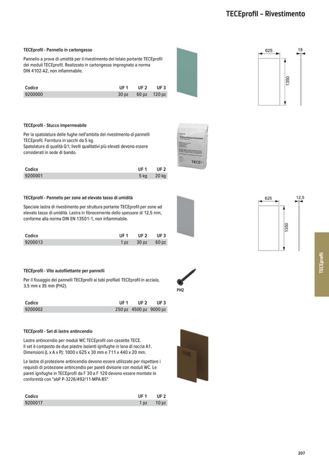 Speciale lastra di rivestimento per struttura portante TECEprofil per zone ad
