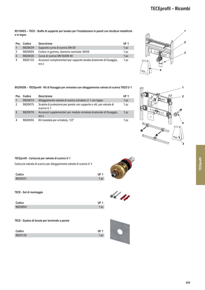 9020038 – TECEprofil - Kit di fissaggio per orinatoio con alloggiamento valvola di scarico TECE U 1
