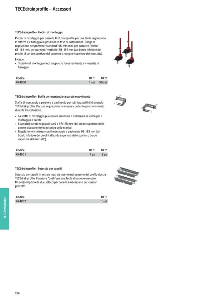 TECEdrainprofile - Piedini di montaggio