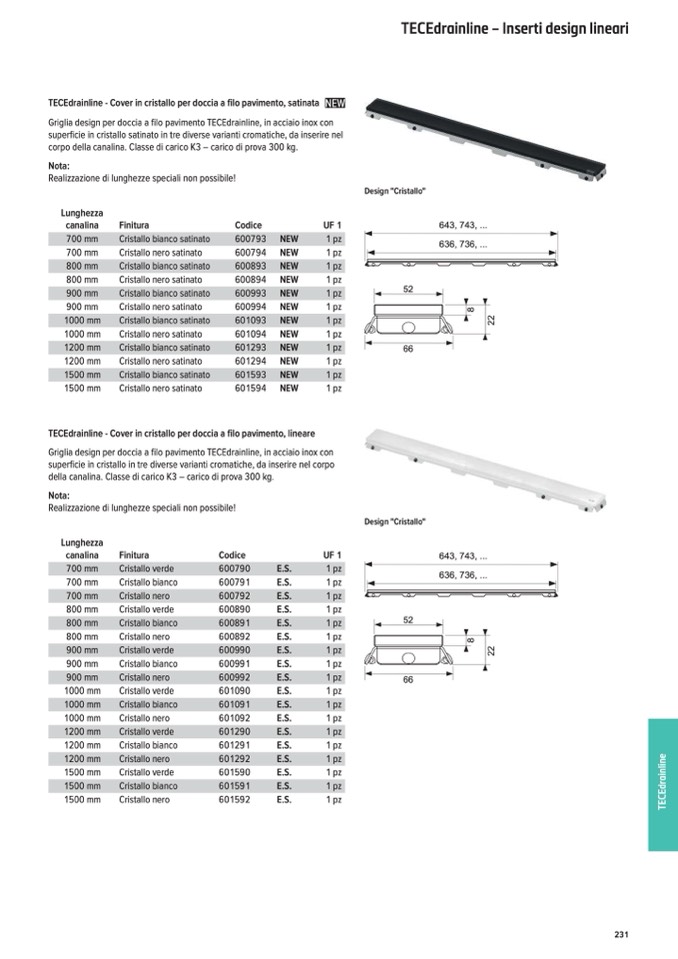 corpo della canalina. Classe di carico K3 – carico di prova 300 kg.