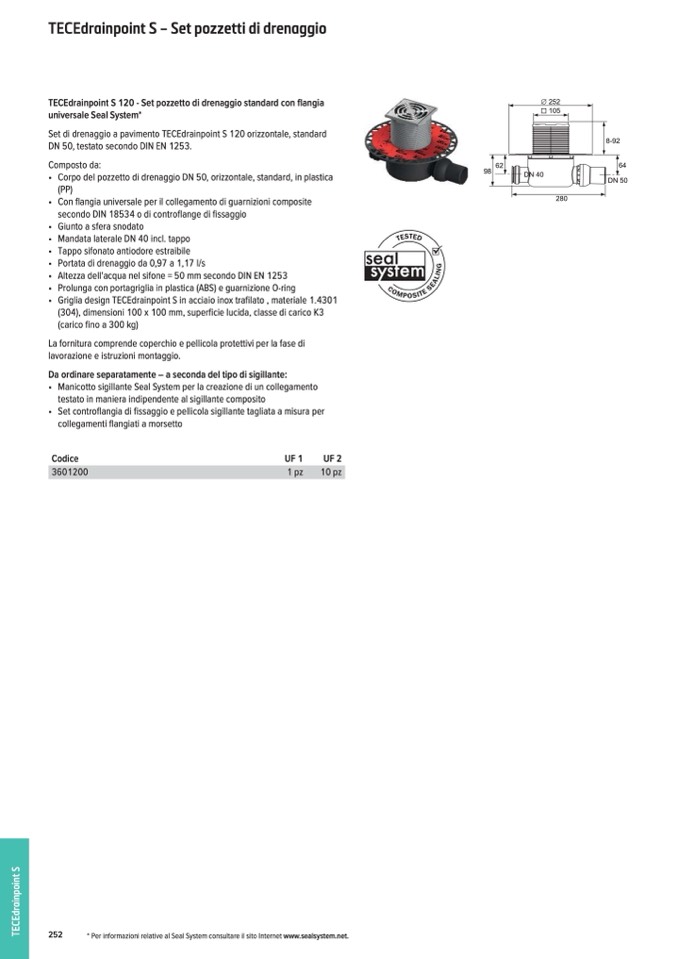 * Per informazioni relative al Seal System consultare il sito Internet www.sealsystem.net.