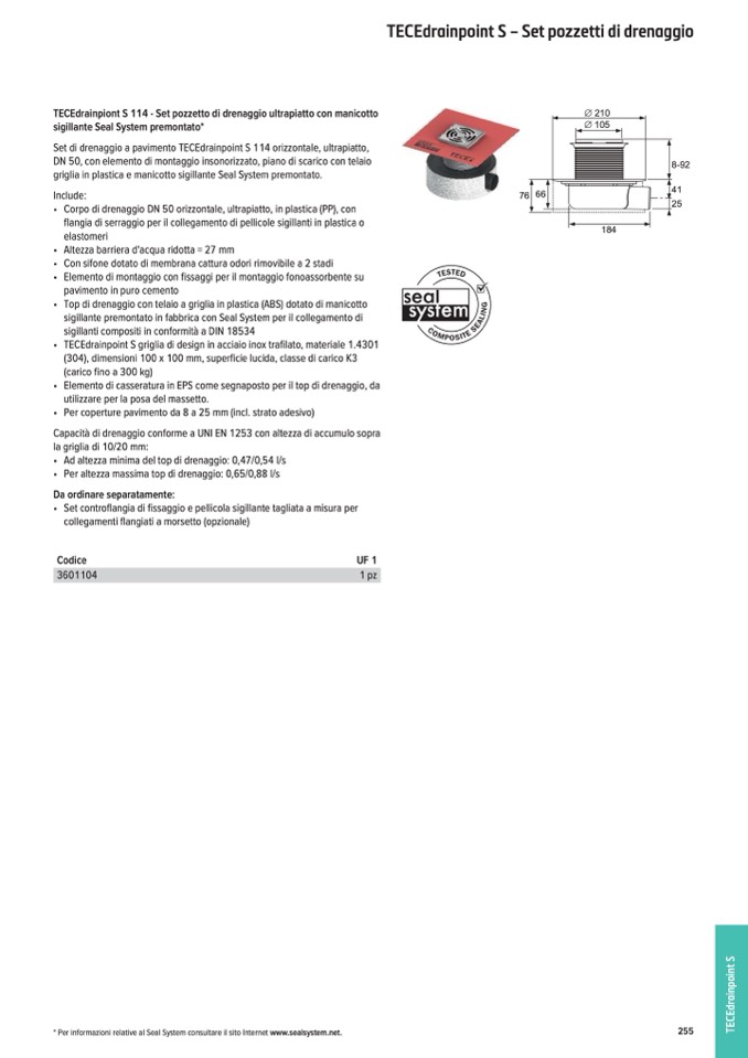 * Per informazioni relative al Seal System consultare il sito Internet www.sealsystem.net.