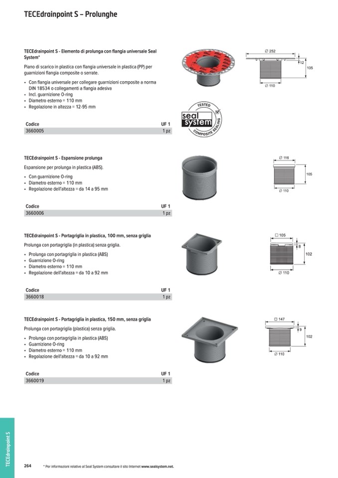 TECEdrainpoint S - Elemento di prolunga con flangia universale Seal
