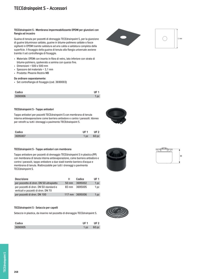 membrana di tenuta. Riattrezzabile per tutti i drenaggi a pavimento