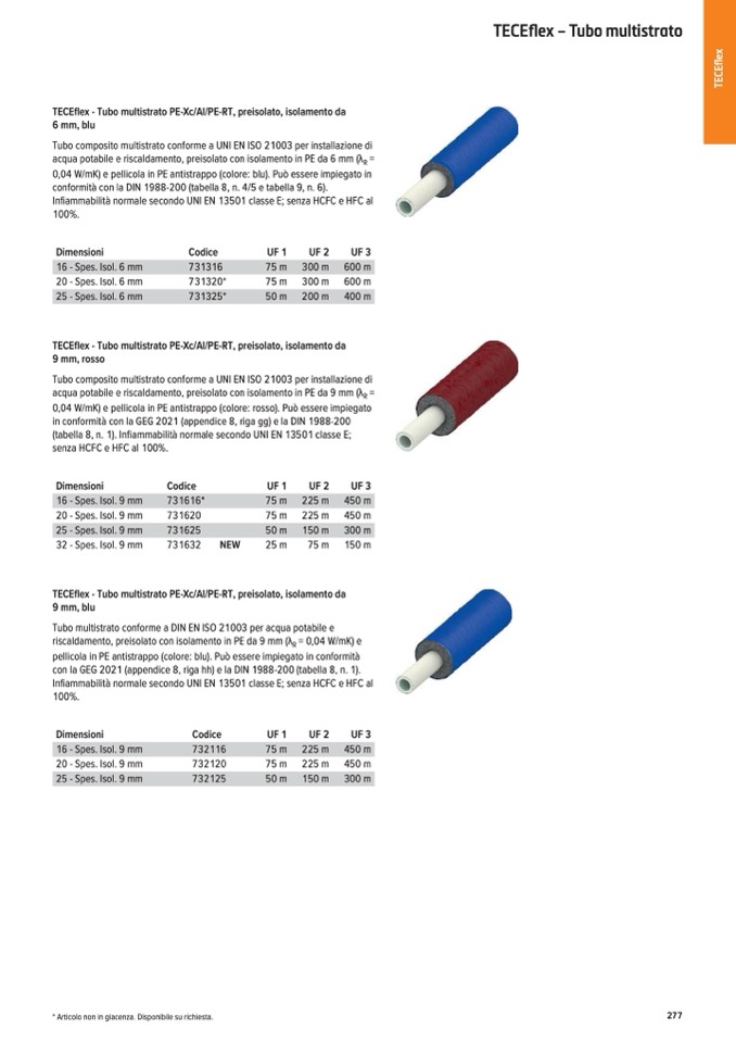 TECEflex - Tubo multistrato PE-Xc/Al/PE-RT, preisolato, isolamento da