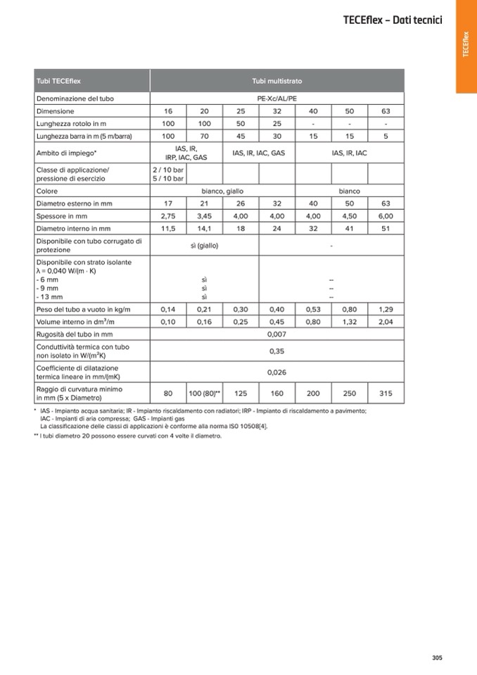 La classificazione delle classi di applicazioni è conforme alla norma IS0 10508[4].